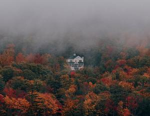 Fog and a moody atmosphere over a house in New Hampshire